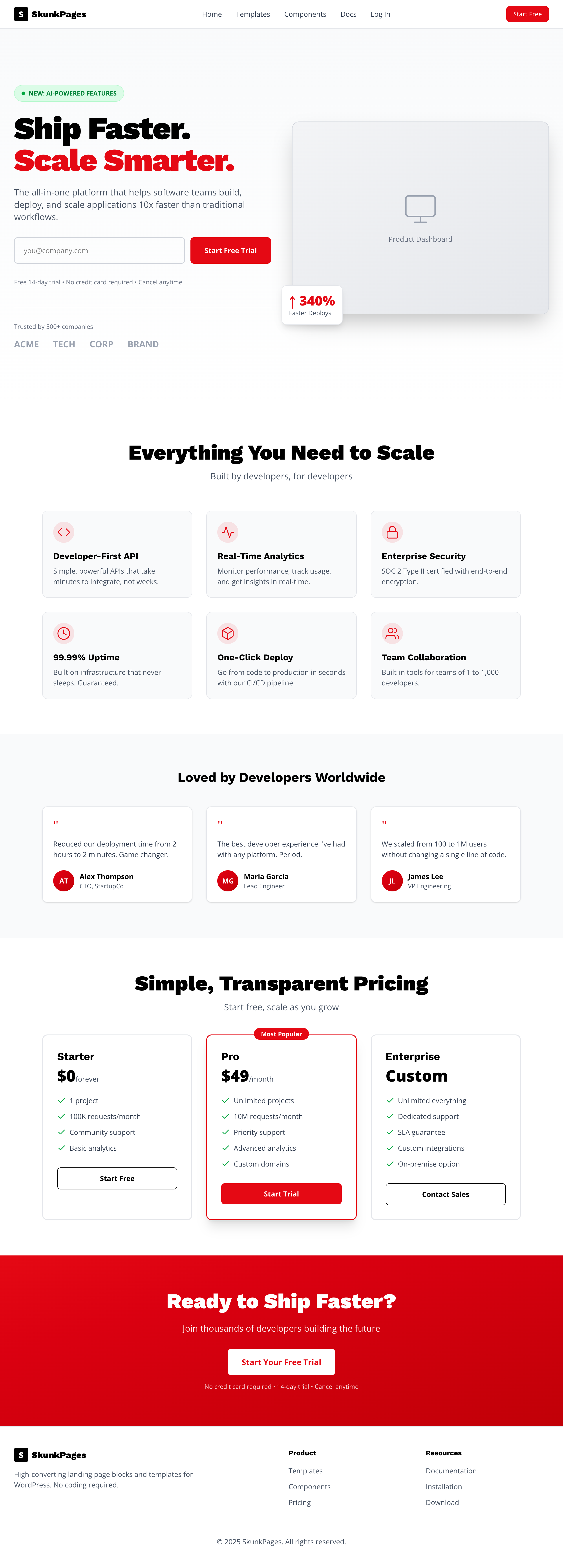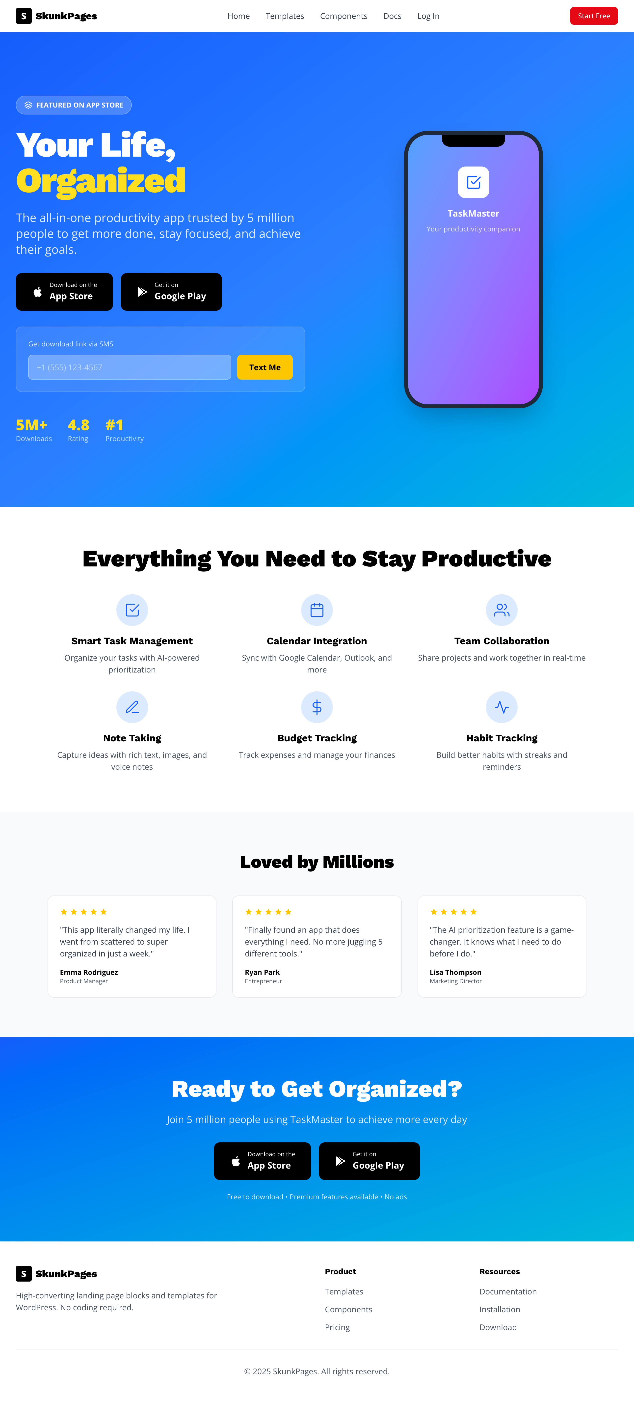 Start with SkunkBlocks FREE, upgrade to SkunkPages PRO theme when ready